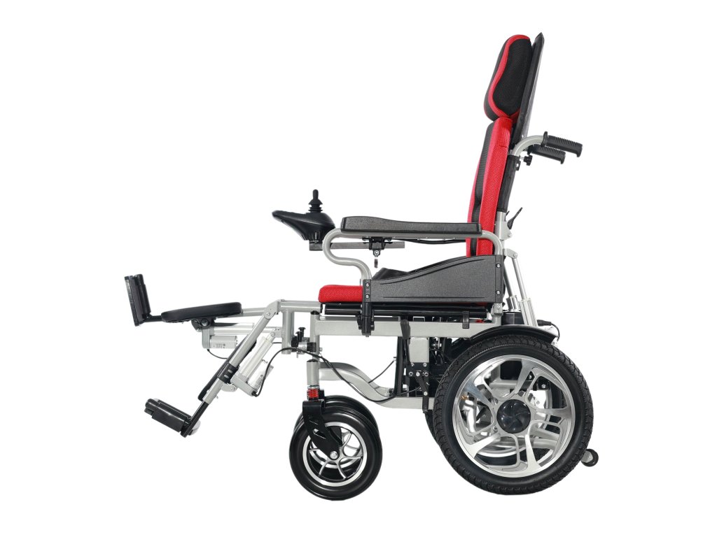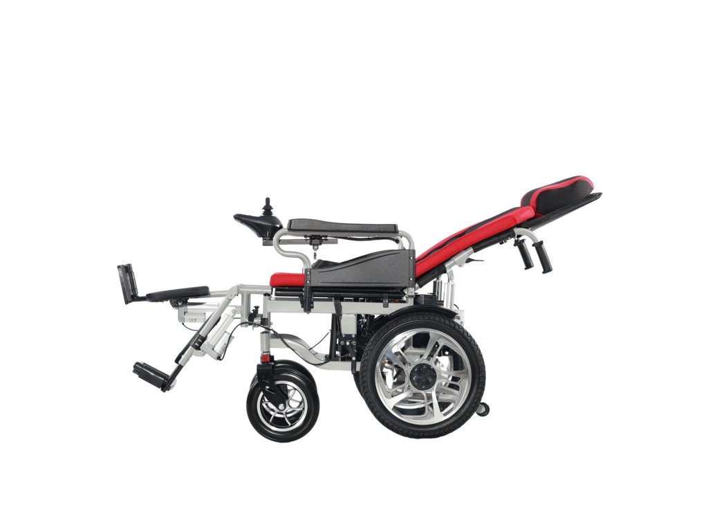 Der Elektrorollstuhl 6003B bietet eine automatische Positionierung der Rückenlehne und der Fußstützen, die über eine Fernbedienung gesteuert wird. Dadurch können Sie den Rollstuhl in eine liegende Position bringen. Der Eroute 6003B ist ideal für Reisen mit dem Auto, Bus und Zug. Mit einem leistungsstarken Motor, Lithium-Akku, einer Reichweite von bis zu 25 km, einer Tragfähigkeit von bis zu 130 kg und einer 2-Jahres-Garantie bietet Ihnen der Elektro-Faltrollstuhl Eroute 6003B dank seiner funktionellen Stoßdämpfer vorne und hinten höchsten Fahrkomfort.