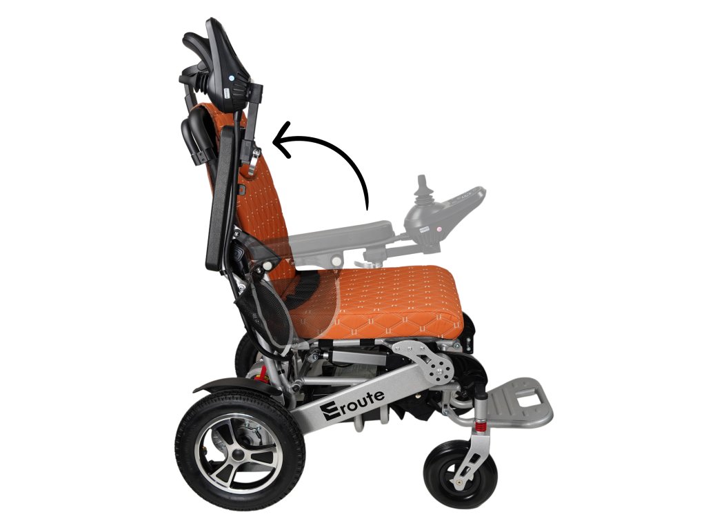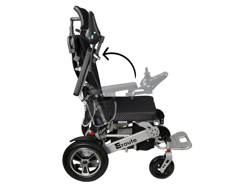 Der Elektrorollstuhl 8000R Li-ion bietet eine automatische Verstellung der Rückenlehne mit Hilfe einer Steuerung. Sie werden den Eroute 8000 besonders bei Reisen mit dem Auto, der Bahn und dem Flugzeug zu schätzen wissen.