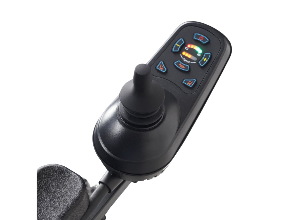 - Der Rollstuhl kann von einer zweiten Person mit Hilfe einer Fernbedienung bedient werden.