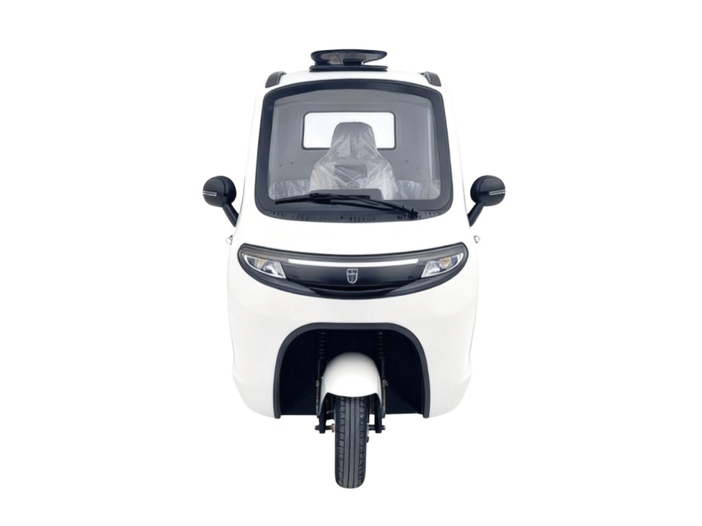 - Die geschlossene Kabine mit Dach schützt vor widrigen Wetterbedingungen, LED-Beleuchtung und Hupe sorgen für mehr Sicherheit.