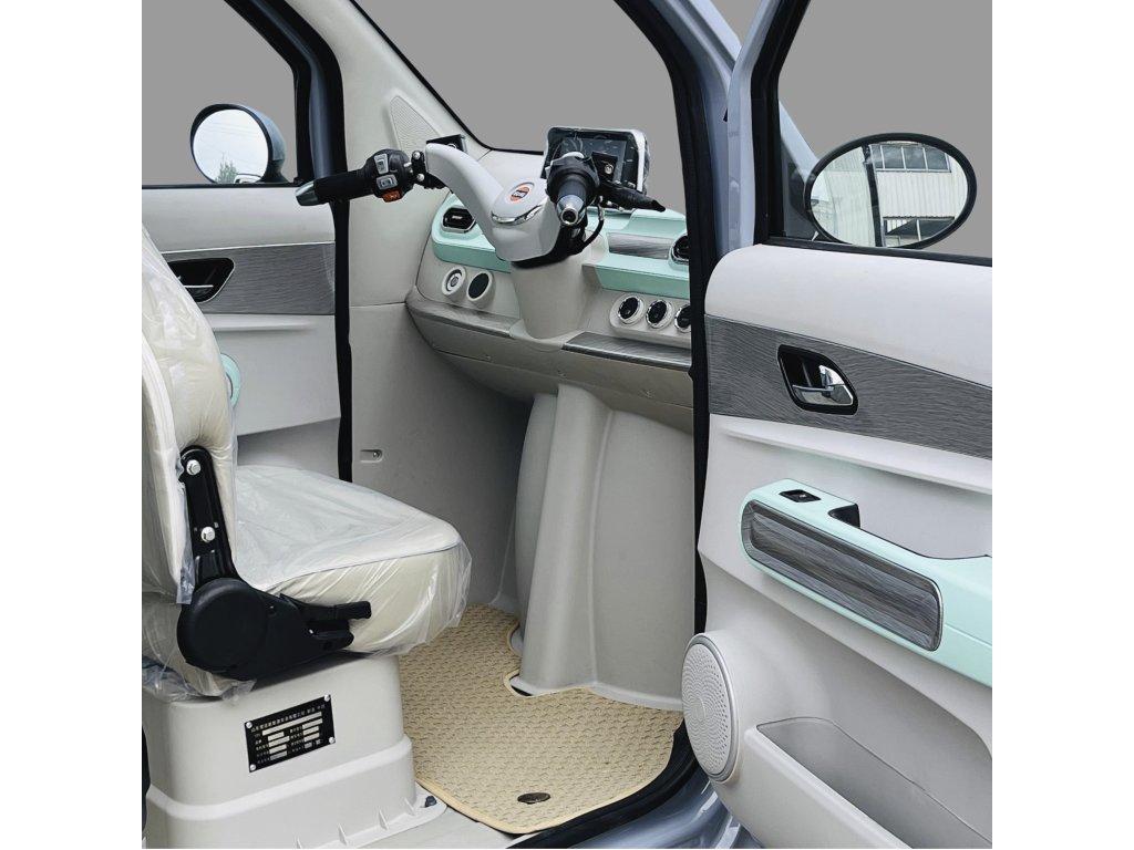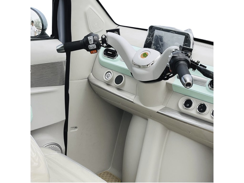 - Die geschlossene Kabine mit Dach schützt vor widrigen Wetterbedingungen, LED-Beleuchtung und Hupe sorgen für mehr Sicherheit.
