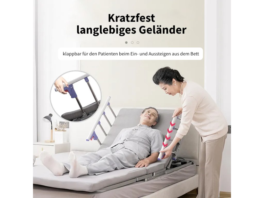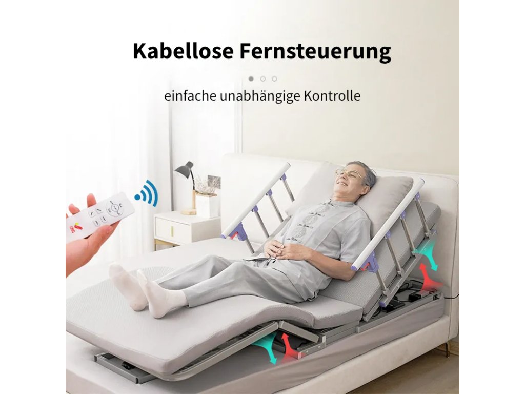 Flexible, confortable et certifié CE. Le lit électrique multifonctionnel est idéal pour les patients alités. Comprend un matelas en fibres innovant.